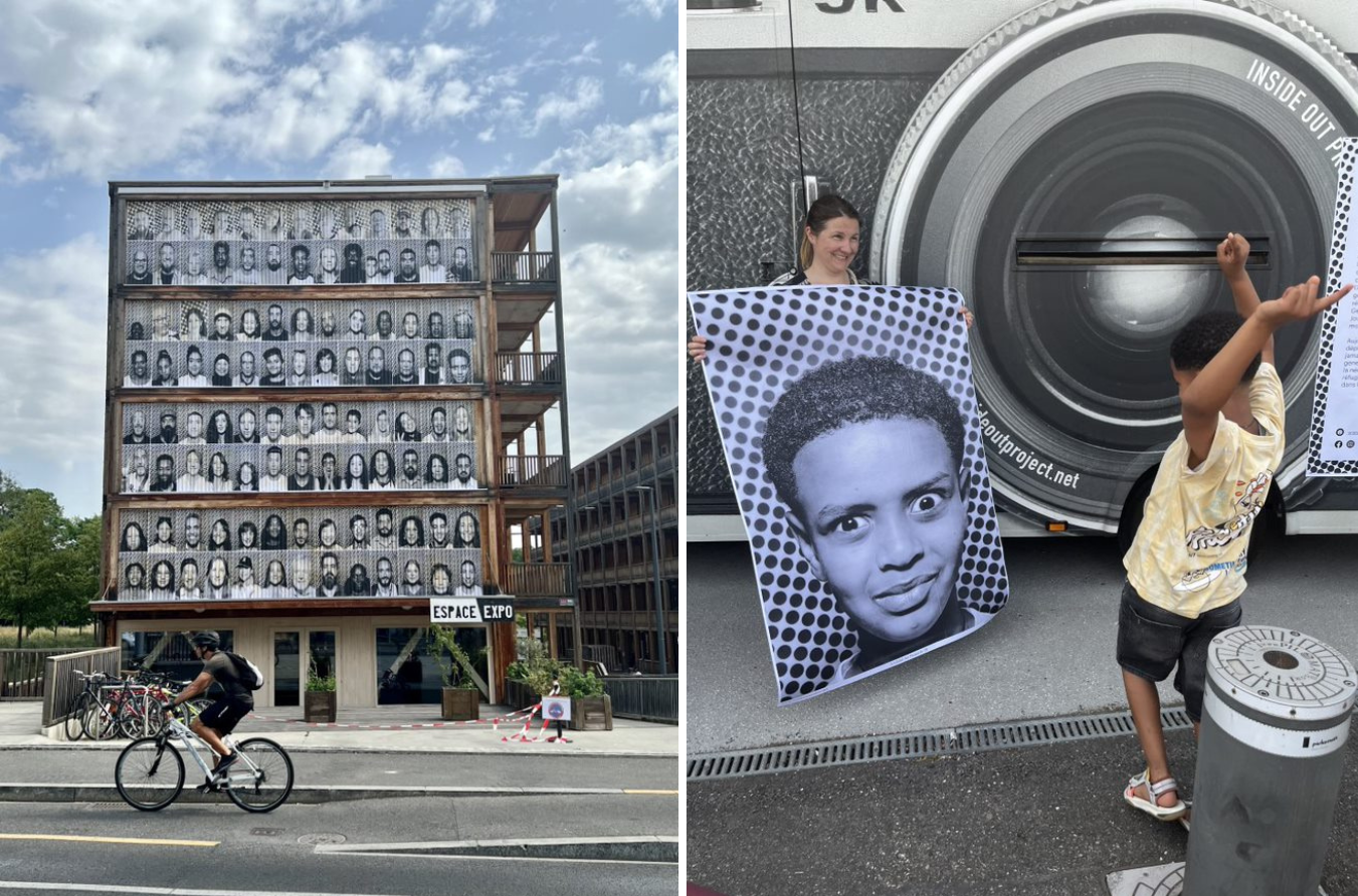 On 28 June, Switzerland for UNHCR invites you to the conference "Art and forced displacement" in the framework of the exhibition "Deflagrations more than a century of children's drawings in wars and mass crimes" at the International Museum of the Reformation. The participants will address art as a vehicle for awareness-raising, reparation, and inclusion in the context of forced displacement. The above images were taken on 20 June 2023, World Refugee Day, during the Inside Out photo booth project by JR organized by Switzerland for UNHCR and the Hospice général at the Rigot collective accommodation center, a facility for refugees and asylum seekers opposite UNHCR headquarters.
