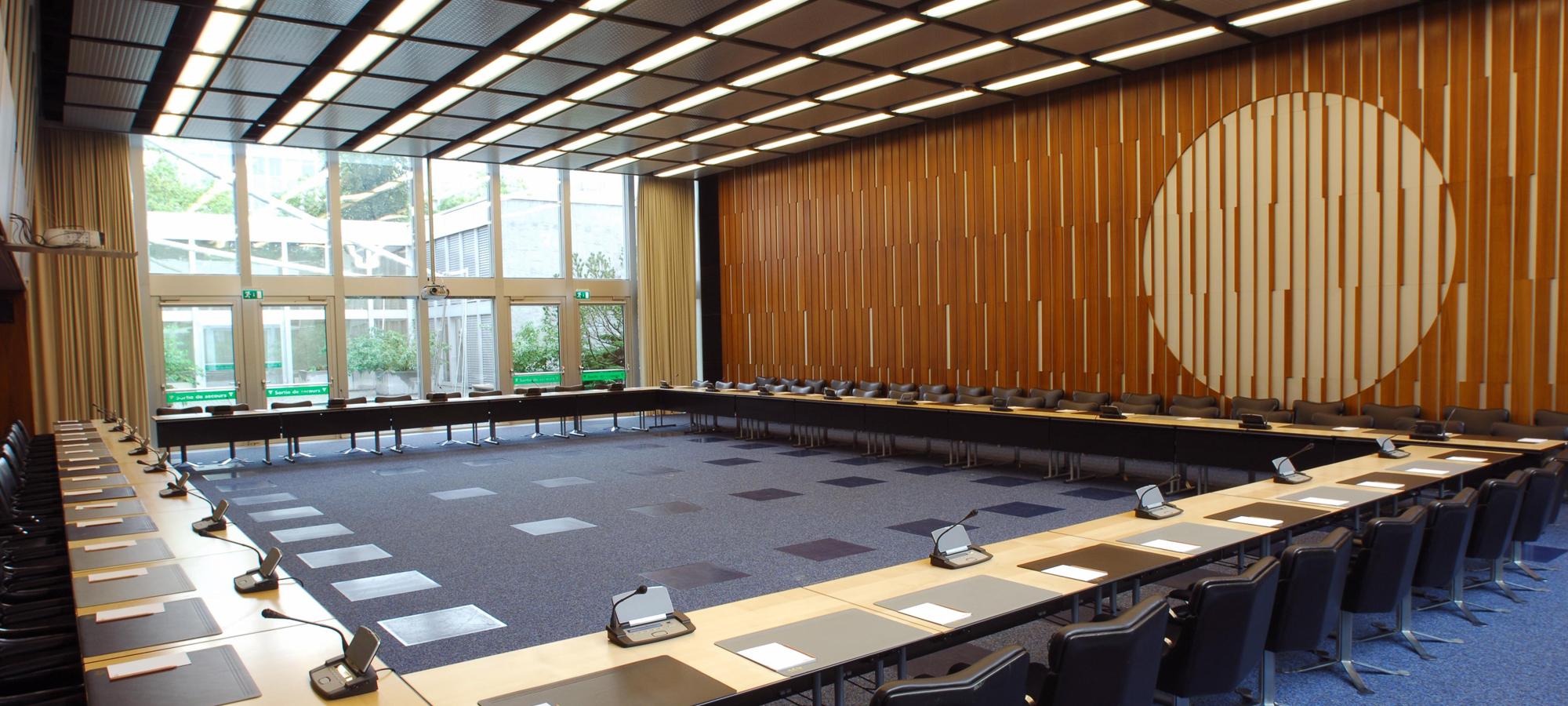 The World Meteorological Organization (WMO) conference centre has a hosting capacity of 455 seats in three conference rooms with the latest equipment: booths for the simultaneous use of eight working languages, access to advanced audio-visual tools and WIFI or cable internet.